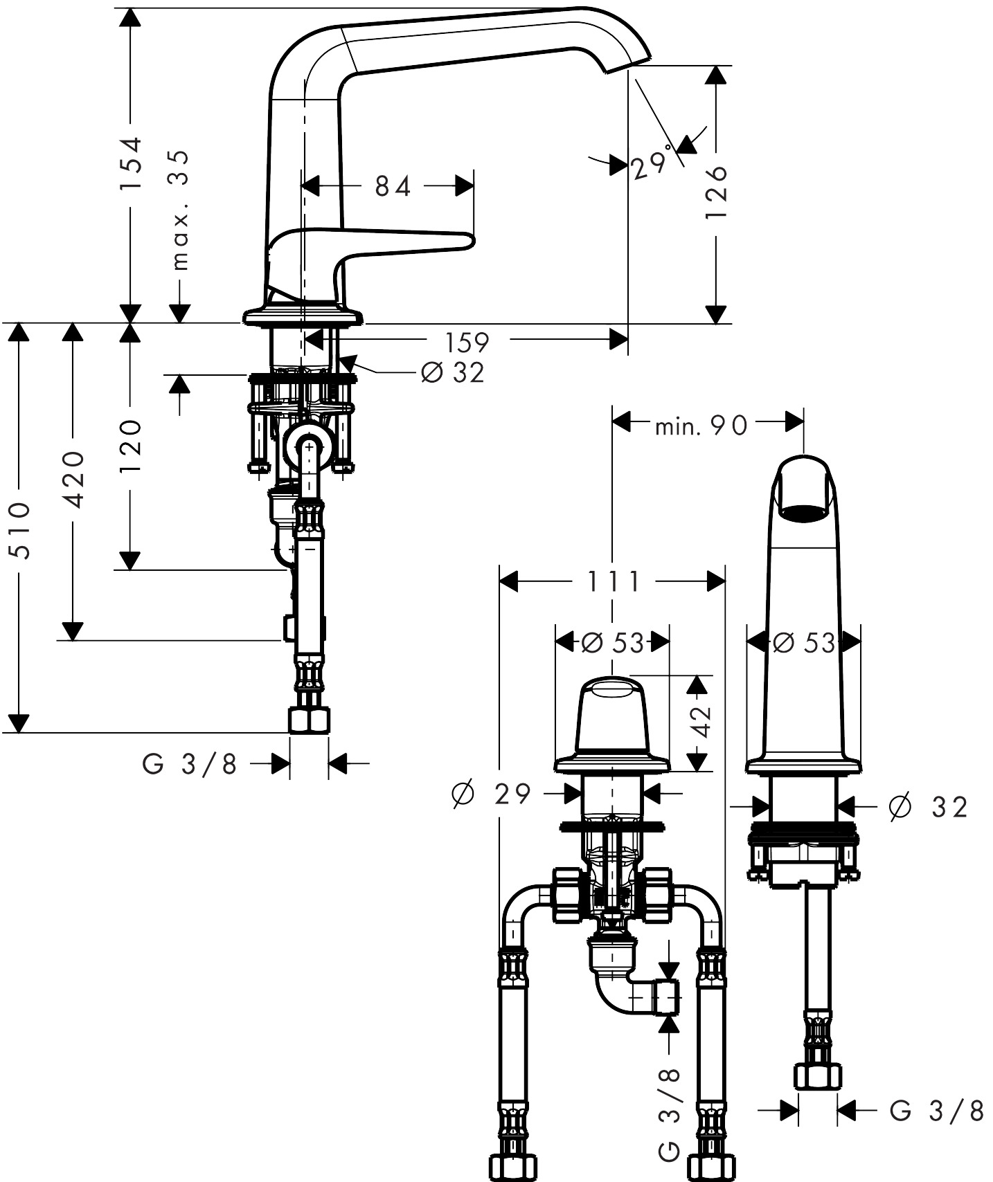 AXOR Bouroullec2-Loch Waschtischmischer 130 ohne Zugstange